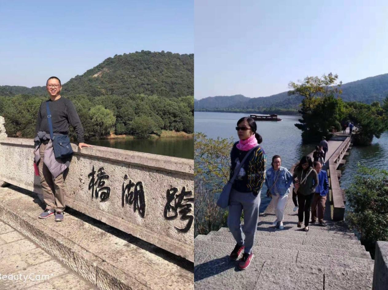 上午9點30分,環(huán)湖游行的伙伴們相約在“越堤”石碑集合,沿湖環(huán)游正式開始。秋日的湘湖水光清澈、波光粼粼,湖橋拾夢、湘浦觀魚又好似西湖美景。一路上,職工們歡聲笑語不斷,攝影小能手們也紛紛拿出手機,留下沿途最美的畫面。