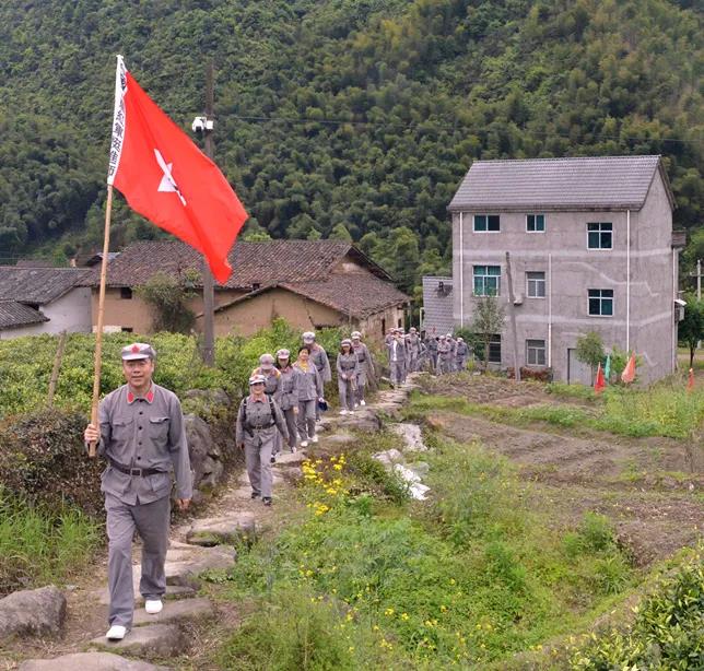 石角村、廟下鄉(xiāng)這片土地上,擁有著光榮的革命傳統(tǒng),承載著豐富的紅色歷史記憶。全體黨員同志沿著龍游第一條通景公路溪毛線赴廟下鄉(xiāng)長生橋村,沿途欣賞天然畫卷萬畝大竹海,參觀傅春齡故居,后在“紅軍服務部”換上紅軍服裝,擎著軍旗、扛著長槍背著斗笠唱著紅歌,向紅軍古道出發(fā),憶苦思甜,珍惜美好生活。下午,大家參觀了嚴村華崗紀念館,聽講解員講述華崗的生平事跡。