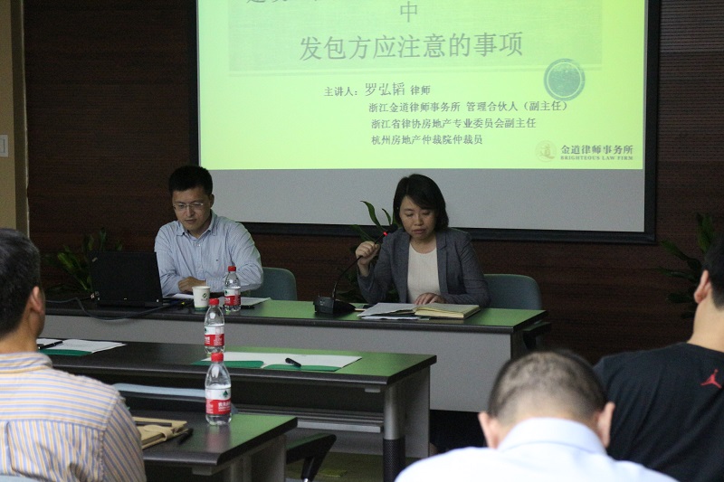 10月21日,為貫徹落實國資監(jiān)管要求,進一步加強建設(shè)工程項目管理,推進科學決策,提高各單位建設(shè)工程項目招投標工作質(zhì)量,保證《浙江省手工業(yè)合作社聯(lián)合社建設(shè)工程項目招投標管理暫行辦法》的順利實施,集團公司邀請杭州市建設(shè)工程質(zhì)量安全監(jiān)督總站陳安東高級工程師和浙江金道律師事務(wù)所羅弘韜、陳麗媚律師,分別作了《招投標概述及案例分析》、《招標投標法實施條例解讀》和《建設(shè)工程施工合同簽訂和履行過程中發(fā)包方應(yīng)注意的事項》、《建設(shè)工程招投標過程中業(yè)主的風險及防范》專題講座。